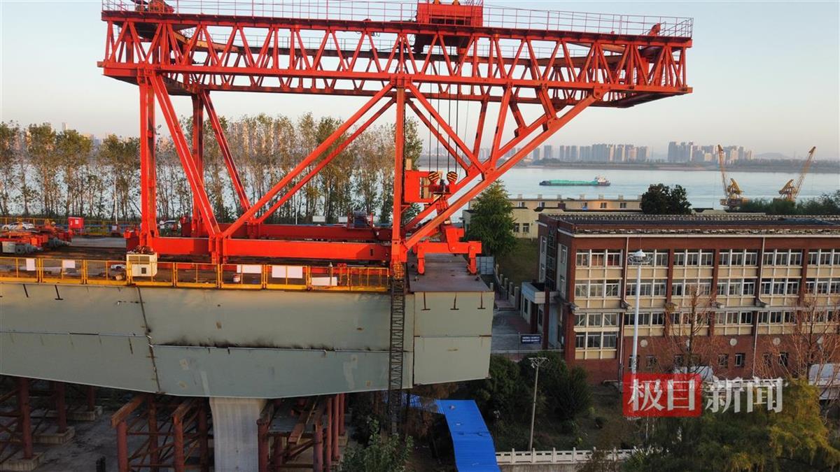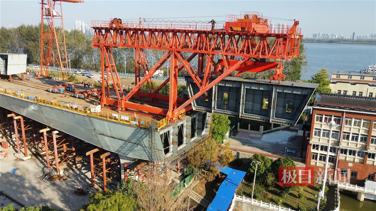 项目负责人介绍,该项目为湖北省首座悬拼施工的钢箱梁,由于环境限制,且主跨长达122米,常规方法无法满足施工条件。项目团队创新性地采用了无拉索曲线钢箱梁非对称悬臂拼装施工关键技术,这一技术开发了一套无拉索悬臂曲线钢箱梁桥面节段运输方法,首创吊点可以六个自由度全方位调整的穿巷式桥面吊机;同时开发一套无拉索曲线钢箱梁非对称悬臂拼装合拢线型控制技术,保证无拉索曲线钢箱梁在悬臂施工过程中能满足设计线型要求,最终实现合龙。这项桥梁重大技术创新与工程突破,标志着武汉市政集团在桥梁建造技术上迈出了坚实的一步,达到了国内领先水平。