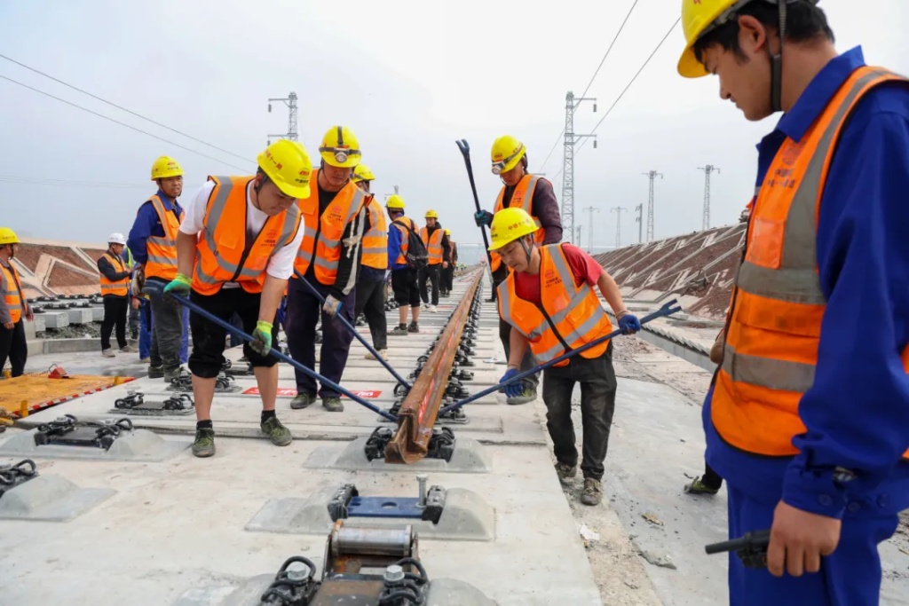 中铁十一局项目负责人李志立介绍,该项目沿线地形地质地貌复杂,长钢轨运输、铺架难度大,安装精准度要求高。项目精心制定施工方案,采用国内先进的智能调度指挥系统和智能群吊,大幅提升施工的智能化、自动化水平。该项目还采用了自主设计、研发的新型铺轨机组,实现了“走单线铺双线”跨线铺轨,减少了往返调车作业次数,效率提升了近一倍。