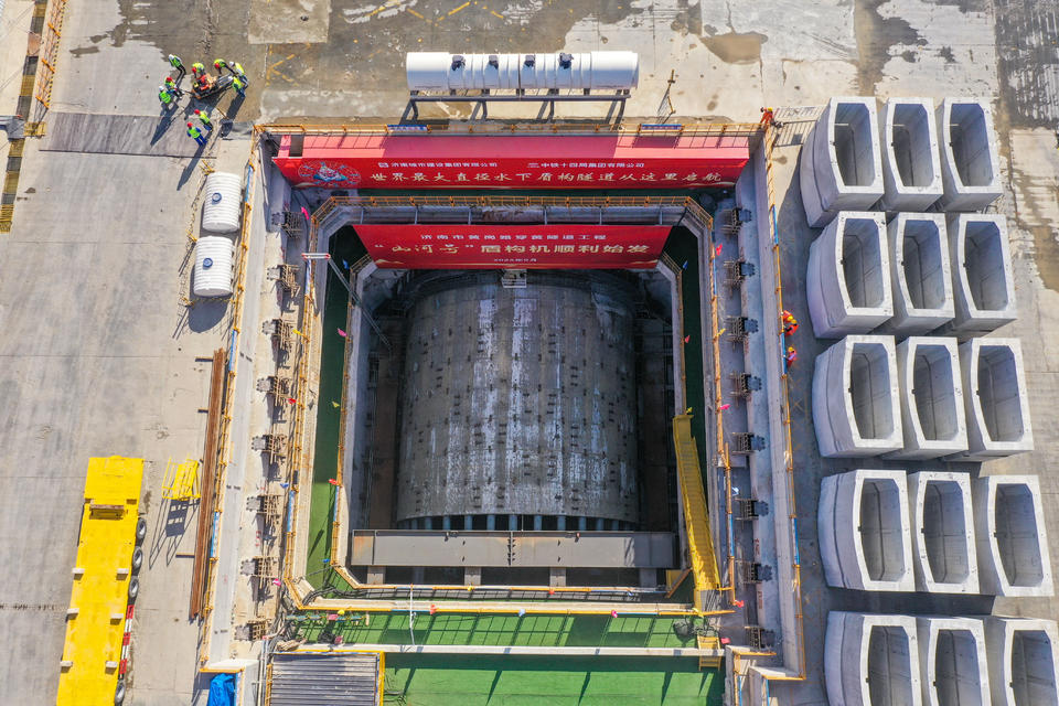 深秋时节,金色的济南龙湖湿地中央,黄岗路穿黄隧道工地上一片忙碌。世界在建工程最大直径泥水平衡盾构机“山河号”,正在地下进行“穿黄之旅”,离黄河越来越近。