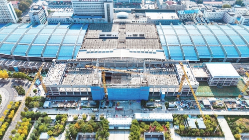 2023年5月,济南火车站增设北站房项目正式开工建设,经过近一年半的建设,部分区域脚手架和蓝色围挡已经拆除,整个北站房的主体已经显露出来。在北站房与济南站的连接处,新建了一处站台,通过楼梯与地下通道相连,站台上方目前正在进行遮雨棚钢架结构安装施工。