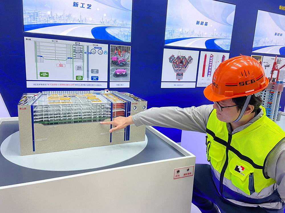 工作人员介绍北外滩91街坊项目的三维基坑模型。澎湃新闻记者陈悦图