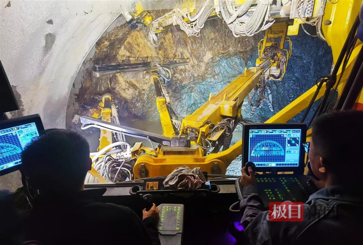 隧道贯通背后,其中得益于“掘进神器”——三臂凿岩台车,好似三头六臂的“哪吒”,挥舞着三支机械臂在隧道岩壁上凿进,仅需2名工人操作,让整个掘进面快速高效。