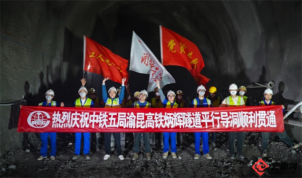 11月23日,由中铁五局承建的渝昆高铁重点控制性工程——炳辉隧道平行导坑(简称:平导)顺利贯通,极高风险段落施工“瓶颈”取得重大突破,为渝昆全线建成通车奠定了坚实基础。