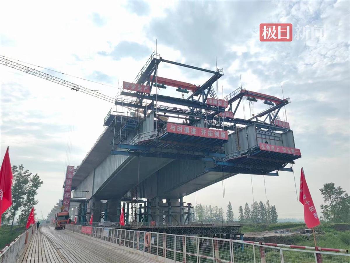 项目总工姚磊介绍,通顺河3号特大桥是标段内重要控制性工程,也是目前国内最大跨径连续体系底、腹板均采用钢结构的波形钢腹板箱型组合梁。