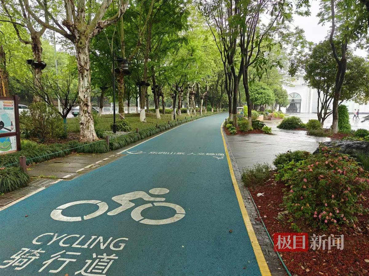 “在月湖段建设中,我们新建改建了4千米的人文绿道,其中3430米长的绿道主线为墨蓝色路面、570米长的绿道支线为黑色路面。”武汉城建集团园发公司该项目负责人介绍,依托月湖园区内部道路,人文绿道兼具骑行与步行功能,以步行功能为主,连通绿道主线与景区内部各景观节点。