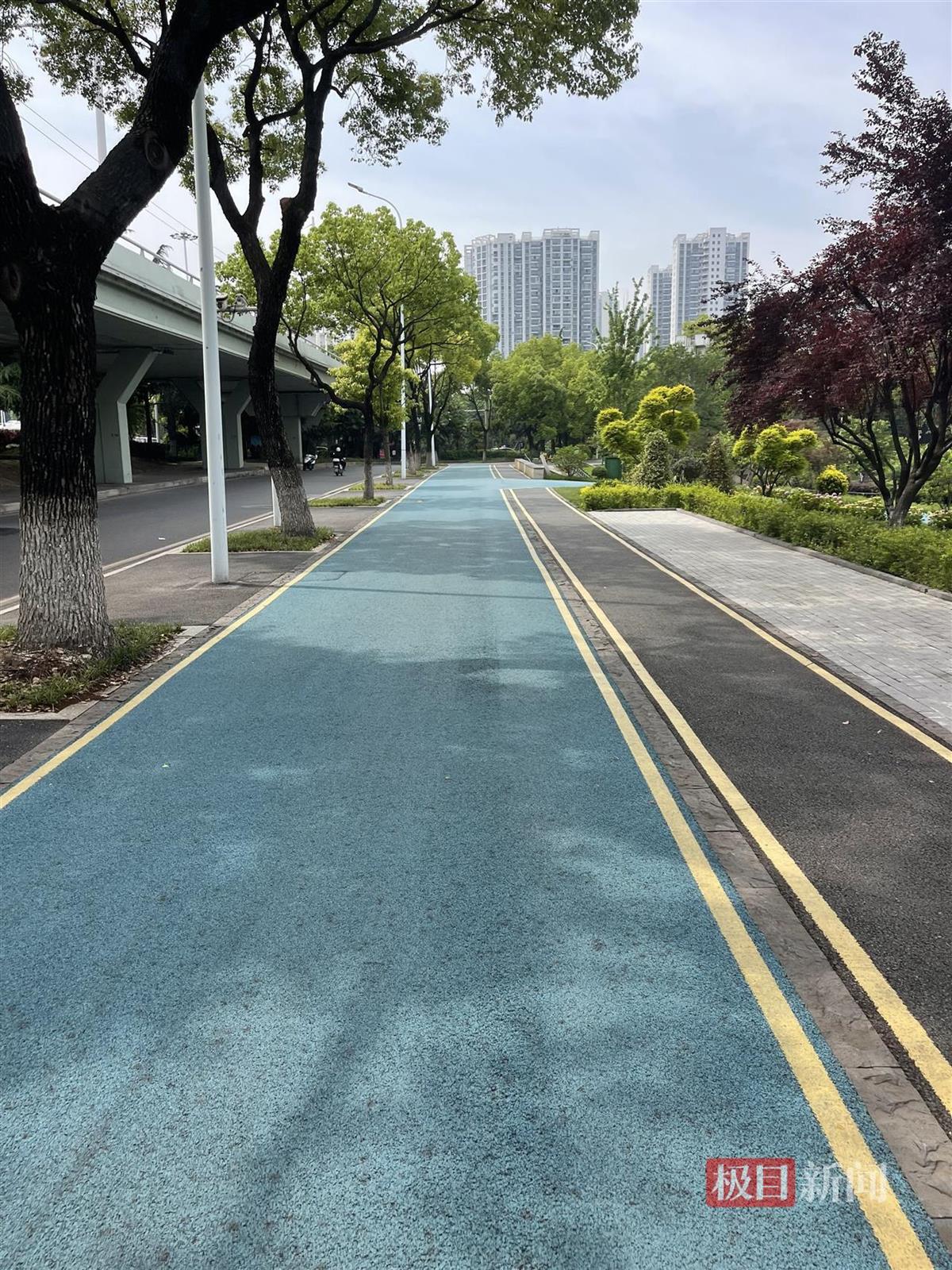 “在蓝色平整的人文绿道上骑行,徜徉在两侧行道树中,挺惬意的。”11月27日,市民刘先生骑着自行车在武汉琴台大道月湖公园段绿道上时发出感叹。