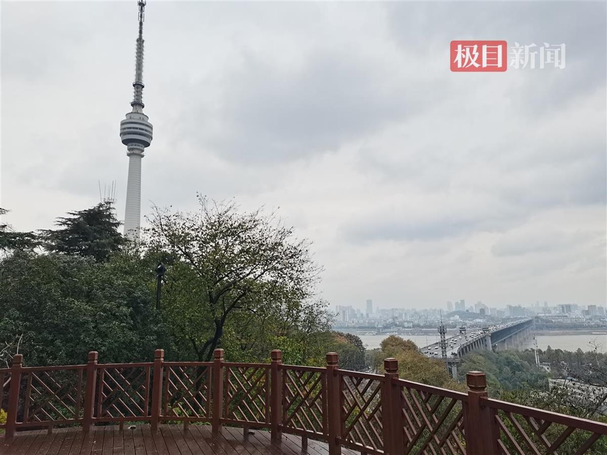 当日,临近龟山电视塔时,一处名曰“龟风飞云”的木质栈道观景平台,吸引了极目新闻记者注意。站在阳台上,远处的黄鹤楼、武汉长江大桥、鹦鹉洲长江大桥等地标元素一目了然。