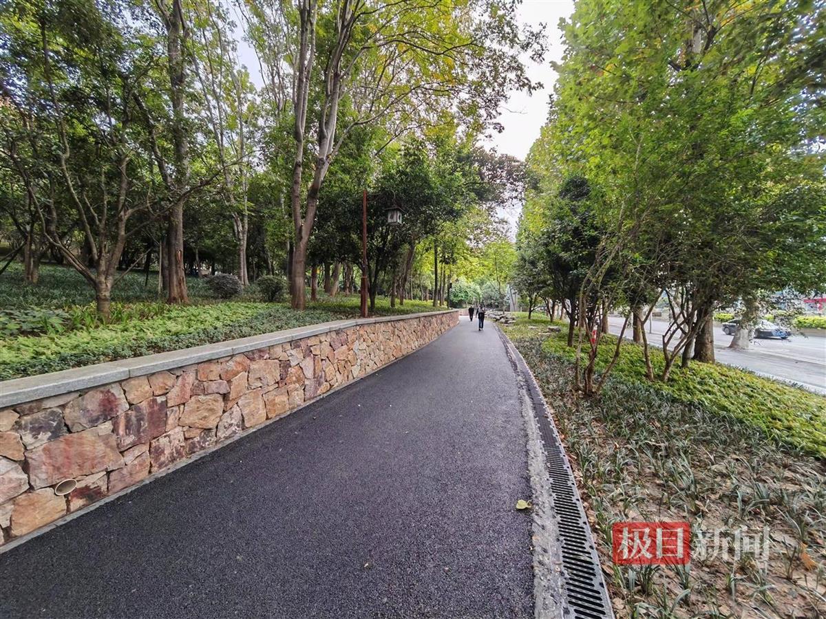 施工方武汉市花木有限公司相关负责人表示,蛇山段串联黄鹤文化和首义文化元素、游客活动空间,施工时梳理了省图书馆至中山路杂乱的景观空间,建立人行、骑行空间,重塑连续无障碍慢行游览体系,为市民提供多层次景观绿化慢行空间。
