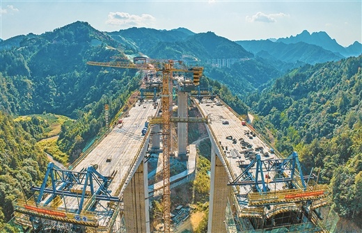 12月3日,在柳州至金秀高速公路金秀段,工人们正加紧桥梁施工作业。该公路是第一条直达金秀瑶族自治县县城的高速公路,建成后将有效改善当地交通条件,促进经济社会发展。(高如金摄)