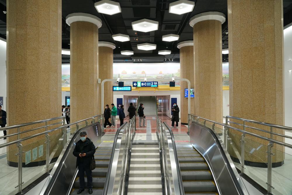 12月15日拍摄的蓟门桥地铁站,站内设有国风主题装饰。新华社记者 张晨霖 摄