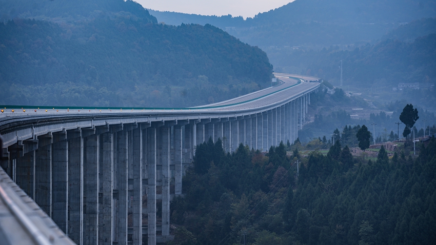 夕阳西下,长达40公里的连续高架桥穿梭在青山绿水之间,成为川西坝子中的一道别致景观。现场负责人向记者介绍,在成绵扩容项目中,考虑到沿线经过大量连片厂房、农田,成都绕城至德阳广汉直接采用了40公里全高架桥直通。当记者乘坐的车辆行驶在这座连接起成都、德阳两市的超长高架桥时,一路十分平稳,由于较大的高差,视野也更为开阔。