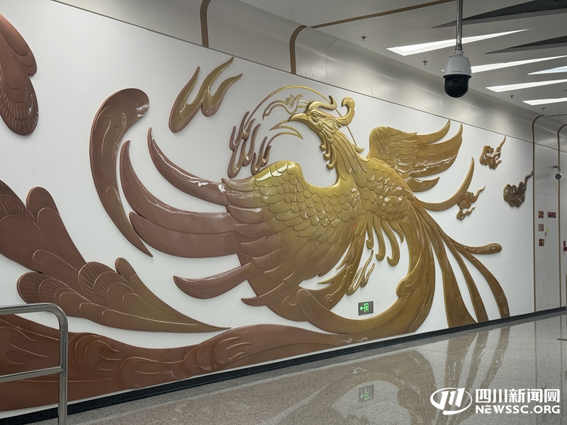 走进赖家店站,金色线条编织成生动立体的凤凰图案栩栩如生,充分展现凤凰展翅的动态与美感;而在双水碾站,则以“山”和“云海”为创作核心,通过吊顶叠错的造型及发光灯膜,构造出层次分明、气势磅礴的空间装饰,创造出如梦似幻的云雾缭绕效果。
