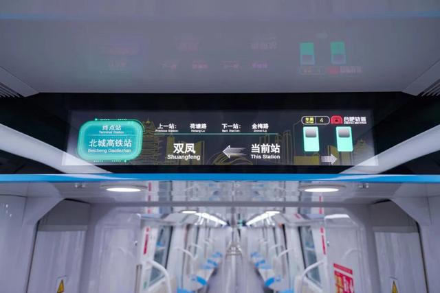 8号线一期全部列车配备43英寸LCD动态电子地图,位于每节车厢车门上方,不仅能够动态显示线路站点、运行方向、当前站、下一站、换乘站等信息,还会显示车厢拥挤程度、车站出入口信息、洗手间位置、扶梯位置等,在车上就能提前判断路径。同时,车厢连接位置上方信息显示屏增设了线路终点站、当前站、上一站、下一站、开门侧等信息显示功能。