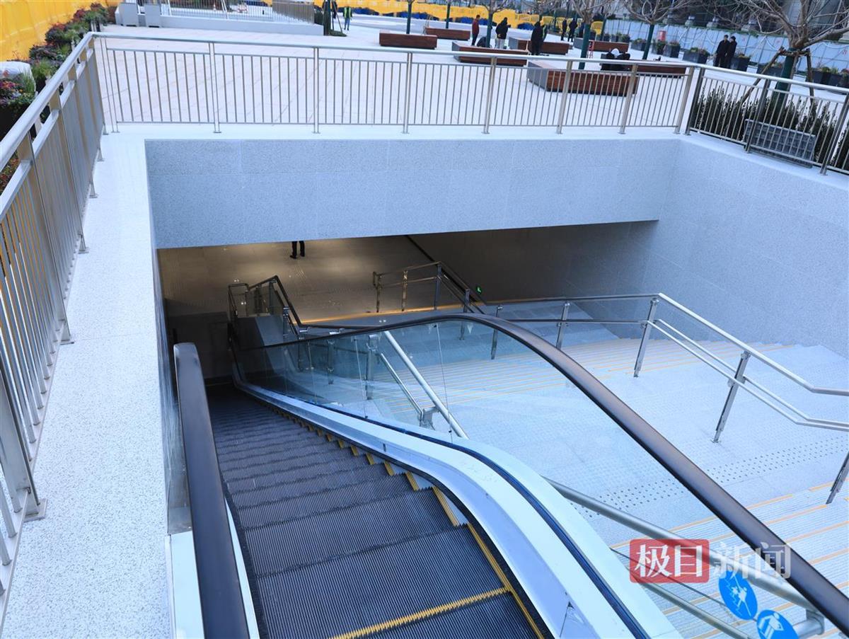 在青岛路交叉口,这里新建了一座地下过街通道,连接汉口江滩入口,呈“工”字形布置,设置4个进出口,全长约28米、宽约12米,主通道两侧连接出入口梯道,采用楼梯加自动梯,实现人车分离,提升道路通行效率。