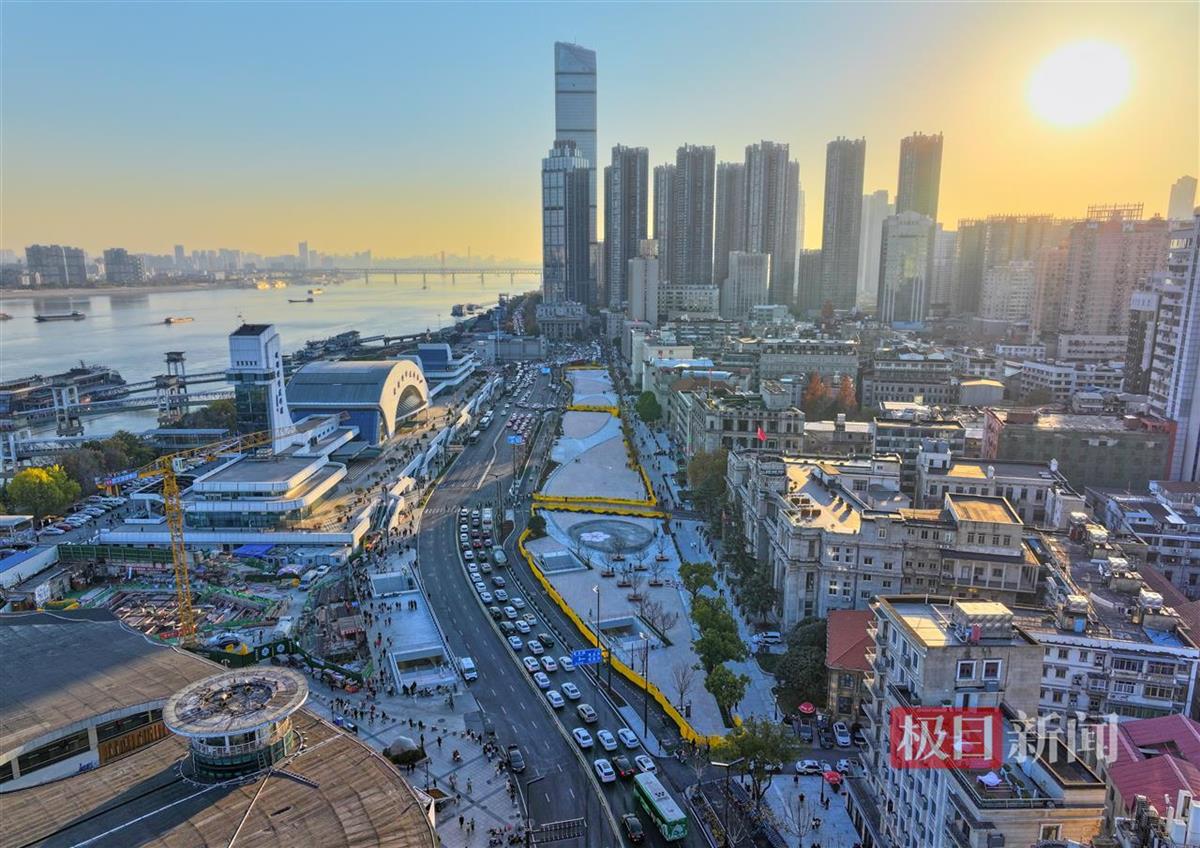 江汉关广场规划总面积约3万平方米,从天津路覆盖到江汉关大楼前,全长约735米。此次率先开放的一期广场已建成开放526米,南至上海路,北至天津路,串联南京路和青岛路,沿线分布有江汉关大楼、花旗银行旧址等7栋百年历史建筑,兼具历史文化底蕴和时代气息,与川流不息的沿江大道、繁华热闹的步行街区形成新旧交融、动静结合的城市人文景观。