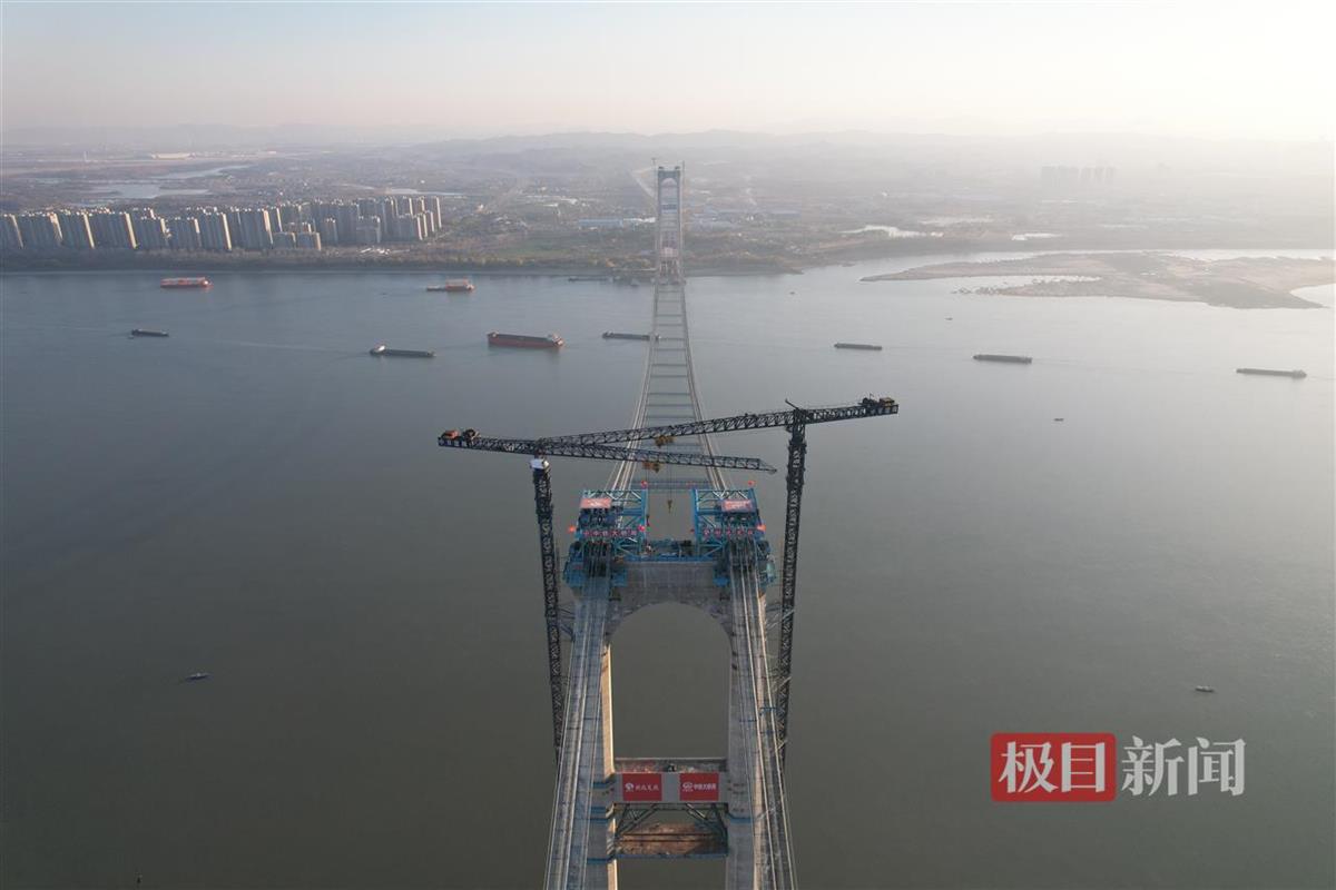 12月31日,极目新闻记者获悉,由湖北交通投资集团投资建设、中铁大桥局承建的世界最大跨度四主缆双层悬索桥——燕矶长江大桥主塔猫道贯通,大桥即将进入主缆架设阶段。