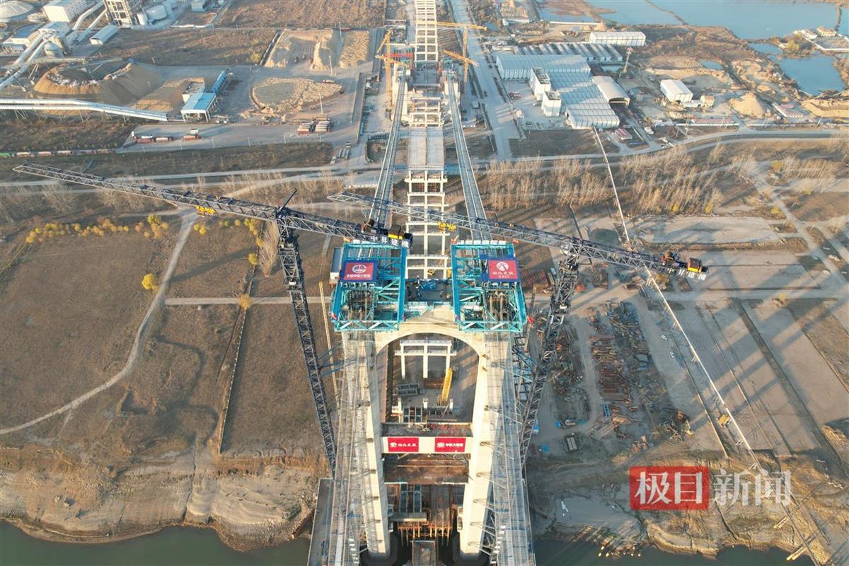 项目负责人介绍,由于临近鄂州花湖机场,受航空限高影响,大桥桥塔仅设计为195米,比一般同跨度悬索桥桥塔低60余米,外加航道需求、生态红线以及桥位地质条件影响等因素,大桥双塔单跨设计并一跨过江,主跨1860米。
