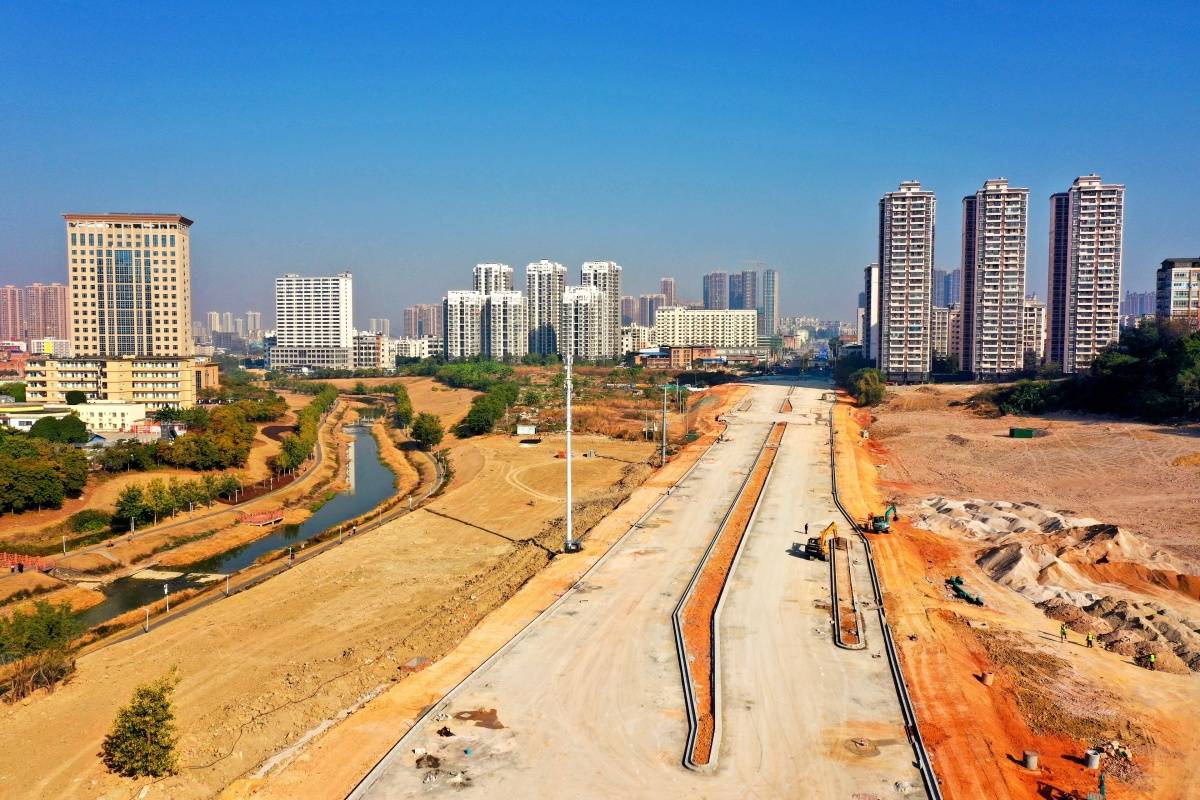 城新公司副总经理张国喜介绍,纵二路(东宁路-清厢快速路)为长堽村五组片区城中村改造项目配套道路之一。该道路以原茶花园路东延长线路命名,设计采用双向六车道建设标准,既满足今后该区域的交通需求,又提升了区域道路通行能力和交通流畅度。燕州路作为城中村改造项目的一部分,将带动周边区域的经济发展,促进城市更新和升级。道路建成通车后,周边地区的商业、住宅等配套设施也将逐渐完善,为长堽村五组居民提供更加宜居、宜业的城市环境。