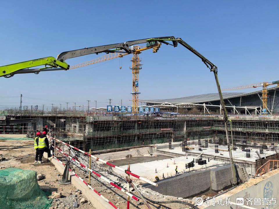 20日上午,记者来到施工现场,现场机械轰鸣,基坑正在混凝土浇筑。“在施工过程中,青岛地铁不断疏通卡点、纾解难点,以项目建设之进支撑高质量发展之稳。为确保市办实事项目按期完成,施工区域克服制约因素,在保证地铁1、3、8号线正常运营的情况下精细化施工,优化混凝土配比,抢抓列车停运时段进行混凝土浇筑,保障混凝土顺利凝固、不裂不渗。”中铁二局青岛北站东广场地下空间项目经理付海龙介绍,目前,整个安顺路区域已全面开工,返岗人数接近1000人。安顺路区域和地面路区域的施工正在有序推进。按照整体规划建设进度,东广场区域内站前路及安顺路地面道路将于今年8月实现通车,出租车、网约车停车场将于12月具备使用条件。