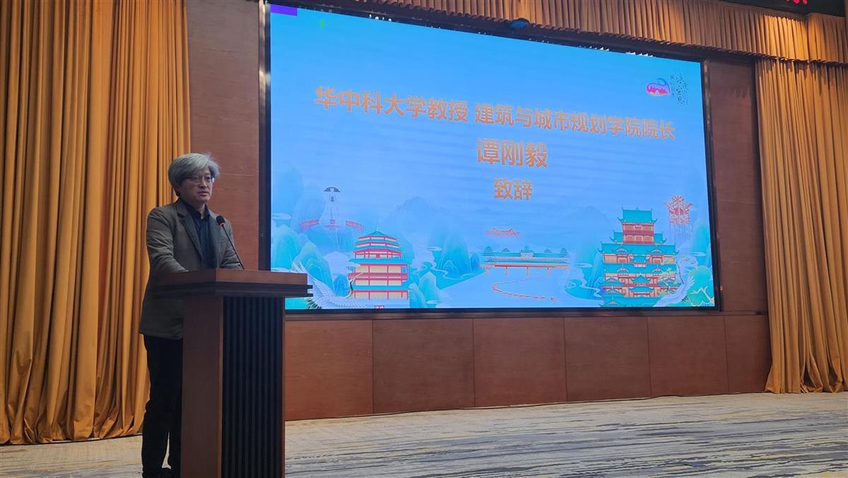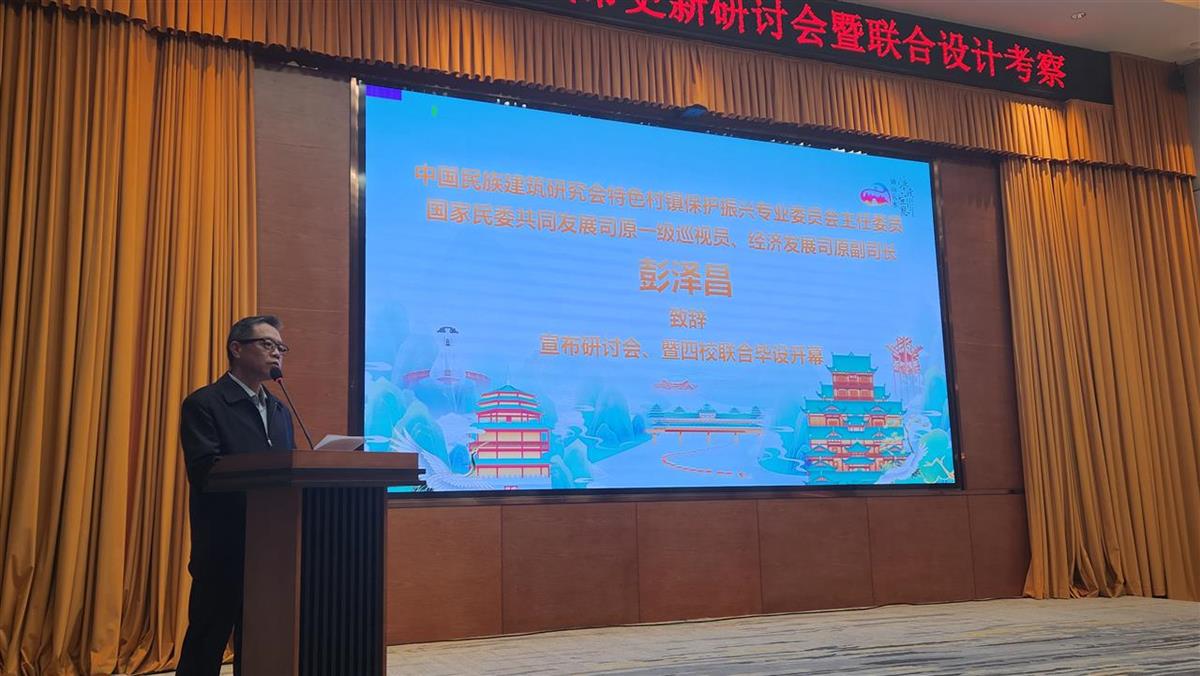 中国民族建筑研究会特色村镇保护振兴专业委员会主任委员彭泽昌致辞并宣布研讨会开幕暨四校(华中科技大学、湖南大学、大连理工大学、深圳大学)联合毕业设计活动启动。