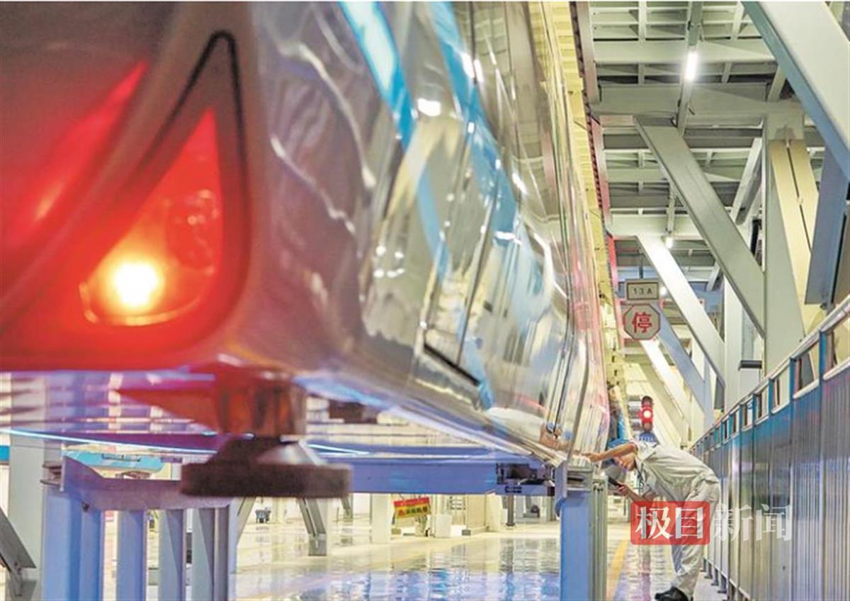安全运行17个月来,幕后有一批来自光谷交通投资集团的专业团队和高端设备,为空轨各方面保驾护航。如智能检测机器人、轨道检修车、维保信息化管理系统等,确保了空轨的安全、高效运行。3月7日,极目新闻记者走进光谷空轨龙泉山车辆基地,一探究竟。
