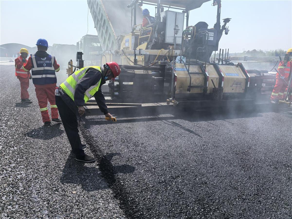 项目负责人介绍,施工团队在前期准备工作中,严格按照设计文件要求,重点对沥青、碎石等大宗材料进行了多轮考察、试验,根据进场原材料优化、调整配合比,并在业主、监理和总监办中心试验室监督下开展试拌试铺,确保材料质量可靠,为试验段铺筑做好了技术准备。