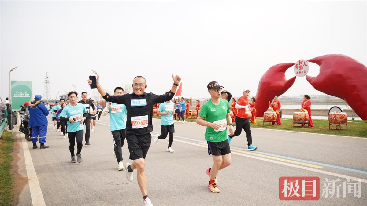 这群工程建设者参与的不仅是比赛,更是一场“成果验收”。此次马拉松赛道沿梁子湖环湖绿道展开,沿岸的一对大蟹钳引得许多人打卡拍照。“这是我们正在建设的梁湖良品农产品提质增效项目的一部分——螃蟹养殖基地。”21公里半程马拉松参赛选手、中建一局梁湖良品项目经理张玉明表示“很荣幸能让众多参赛者参与‘检验’我们施工成果,我们也将保质保量加速完成工程建设,和鄂州市一道跑出高质量发展加速度。”