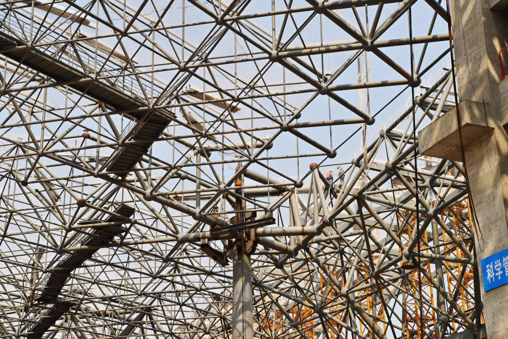4月2日,建设者在南宁吴圩国际机场T3航站楼中央区钢结构屋盖上施工。新华社记者 周华 摄