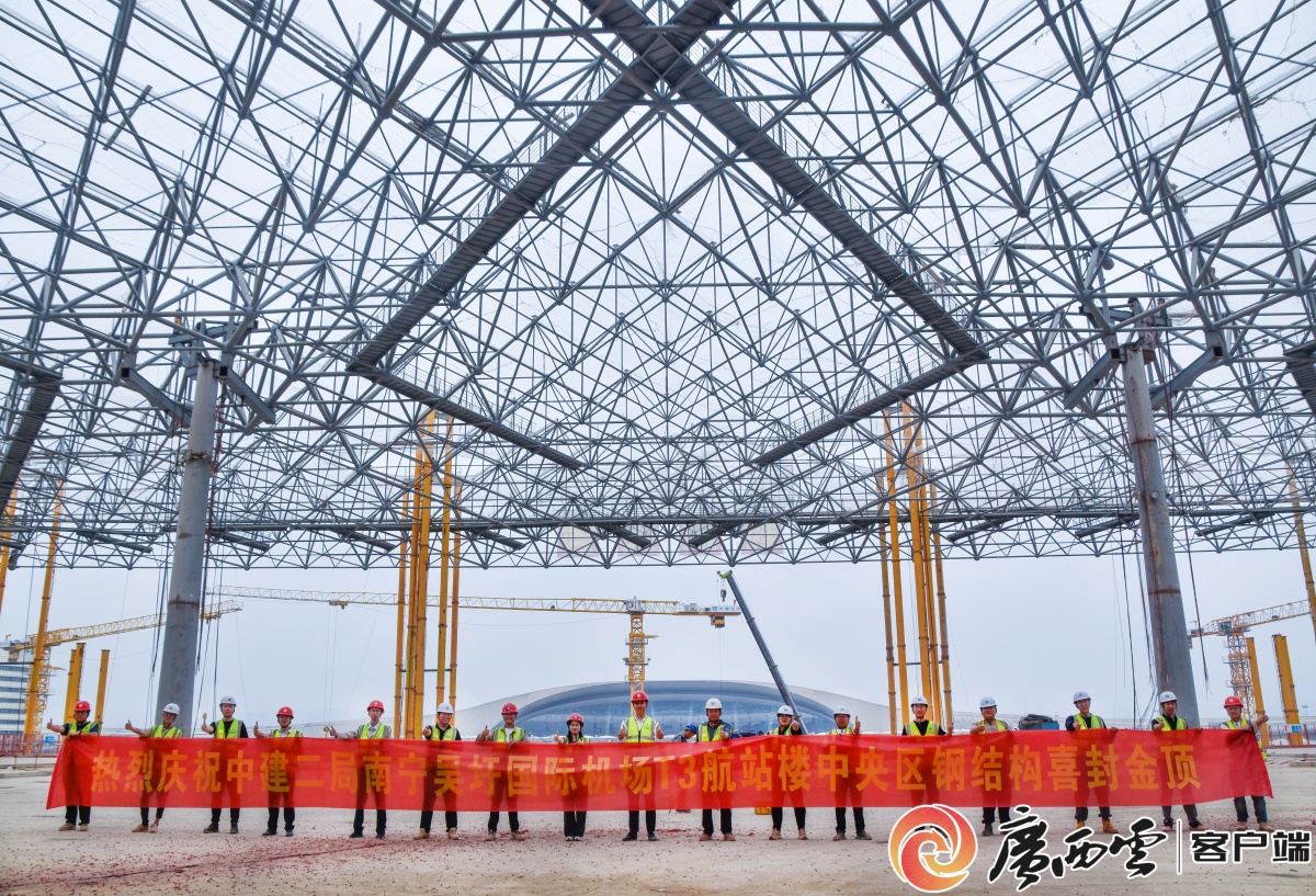 南宁吴圩国际机场T3航站楼项目不仅被纳入国家“十四五”规划重大工程,还是广西壮族自治区层面统筹推进的重点项目。其中,南宁吴圩国际机场T3航站楼中央区钢结构屋盖包含近8万根杆件,最大悬挑30.25米。该项目由中国建筑第二工程局有限公司承建、中建二局安装工程有限公司参建。目前,钢屋盖已完成提升,中央区钢结构主体结构实现全部封顶。