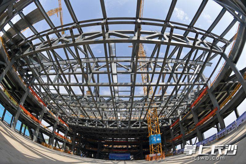 4月3日,记者走进湘江科学城,映入眼帘的是已完成主体结构封顶的科学交流中心,这标志着湘江科学城首开区“五大建”主体结构已全面完成封顶。