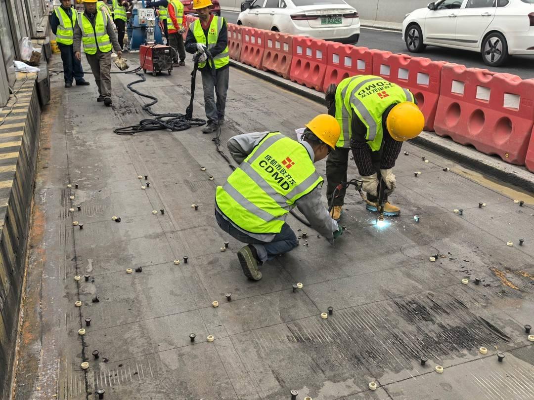 以往,传统沥青路面在钢桥面上,一遇到高温就像“巧克力遇上暖炉”,公交车重载重刹时,极易造成拥包等道路病害。为解决BRT站台病害反复的问题,项目首次采用UHPC超高性能混凝土铺装技术。据项目负责人介绍,配合TRC磨耗层技术,新材料寿命可达传统沥青的5倍以上,这种掺入钢纤维的新材料,抗压强度达120兆帕,相当于每平方米能承受12000吨重量。能有效根治路面病害,还能缩短公交车进站时的制动距离。