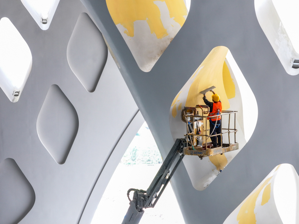 重庆东站站房及配套综合交通枢纽工程位于重庆市南岸茶园片区,总建筑面积约122万平方米,站场规模为15台29线,是重庆市“米”字形高铁网的关键节点,也是全国交通强国“站城一体化发展”试点工程。