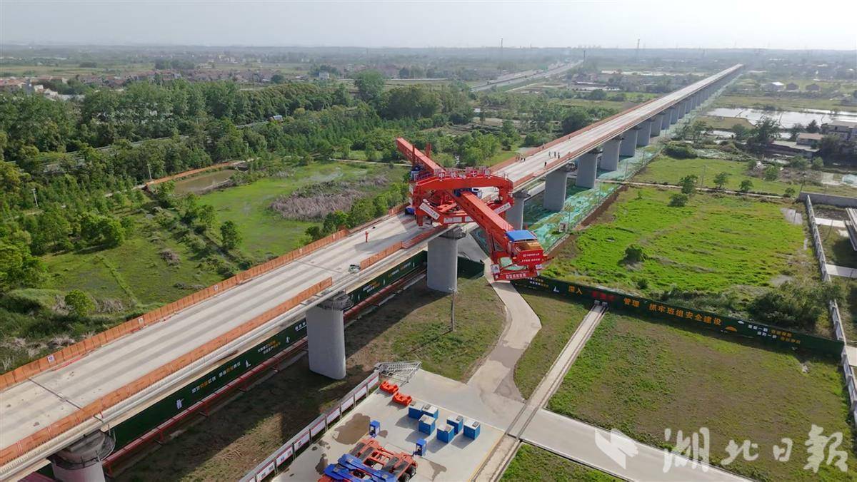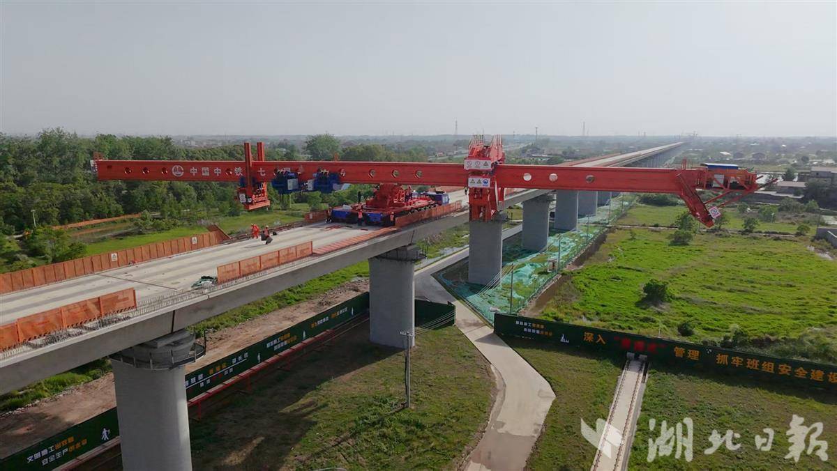 湖北日报讯(通讯员李思靓、段晓宇)5月9日16点48分,合武高铁湖北段塘埠口滠水特大桥施工现场,一台78米长、368吨重的DJB900型架桥机,在运梁车的驮运下仅用40分钟完成180度调头作业。此次“旋转芭蕾”式调头,标志着工程正式转入小里程方向架梁阶段,为后续施工筑牢基础。