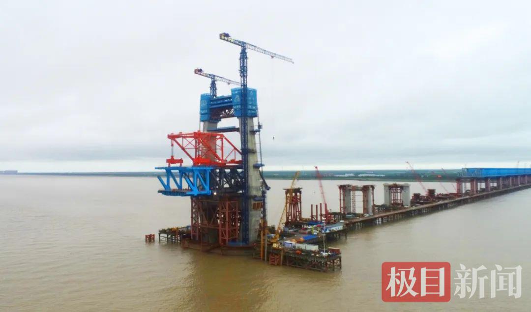 近日,由中铁大桥局承建的沪渝蓉高铁V标——崇启公铁长江大桥主通航孔桥首吊钢梁架设完成。
