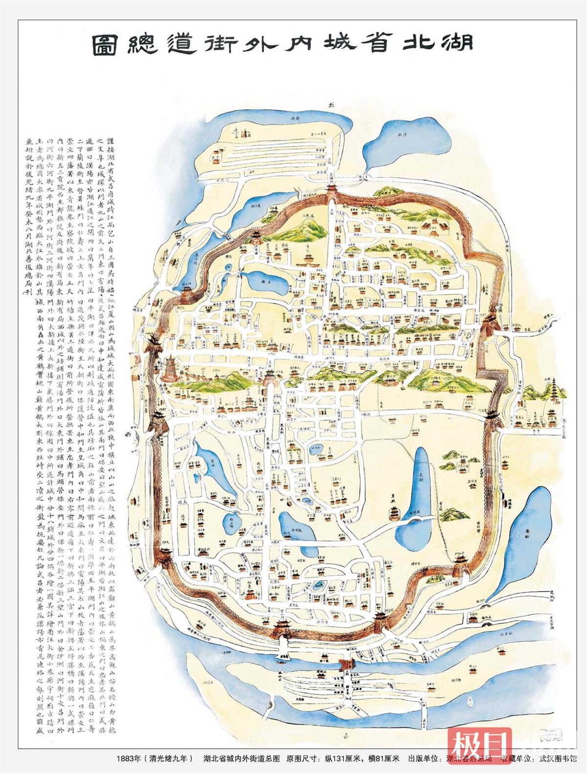 该地图原图收藏于武汉图书馆,纵131厘米、横81厘米,呈现的武昌城始建于明洪武年间,清代是湖广总督、湖北巡抚及武昌知府驻地,位于现在武汉市的武昌区。