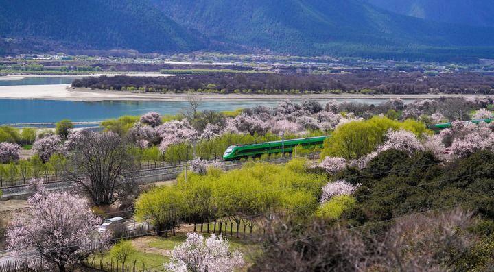 复兴号列车穿行在拉林铁路林芝段境内(4月2日摄)。新华社记者 晋美多吉 摄