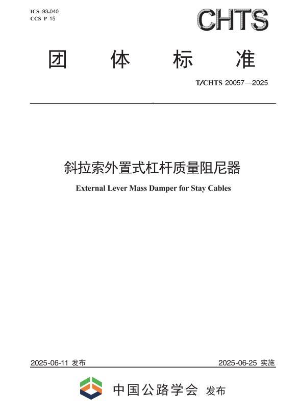 近日,由桥科院主编、中国公路学会发布的团体标准《斜拉索外置式杠杆质量阻尼器》(T/CHTS20057-2025)正式实施。这是桥科院首个自主研发产品的专项技术规范,标志着其在抗振减灾领域的技术标准化取得重大突破。该标准的出台,为行业提供了统一的技术和质量标杆,将有力推动LMD技术的规范化应用与发展。