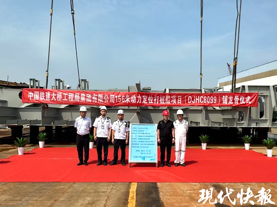 现代快报讯(通讯员 薛祥明 记者 严君臣)8月26日,目前世界上在建的最大打桩船——“156米动力定位打桩船”在江苏大津重工有限公司南通基地完成龙骨安放重要日期确认,标志着该项目正式由分段制作进入船台搭载建造阶段。