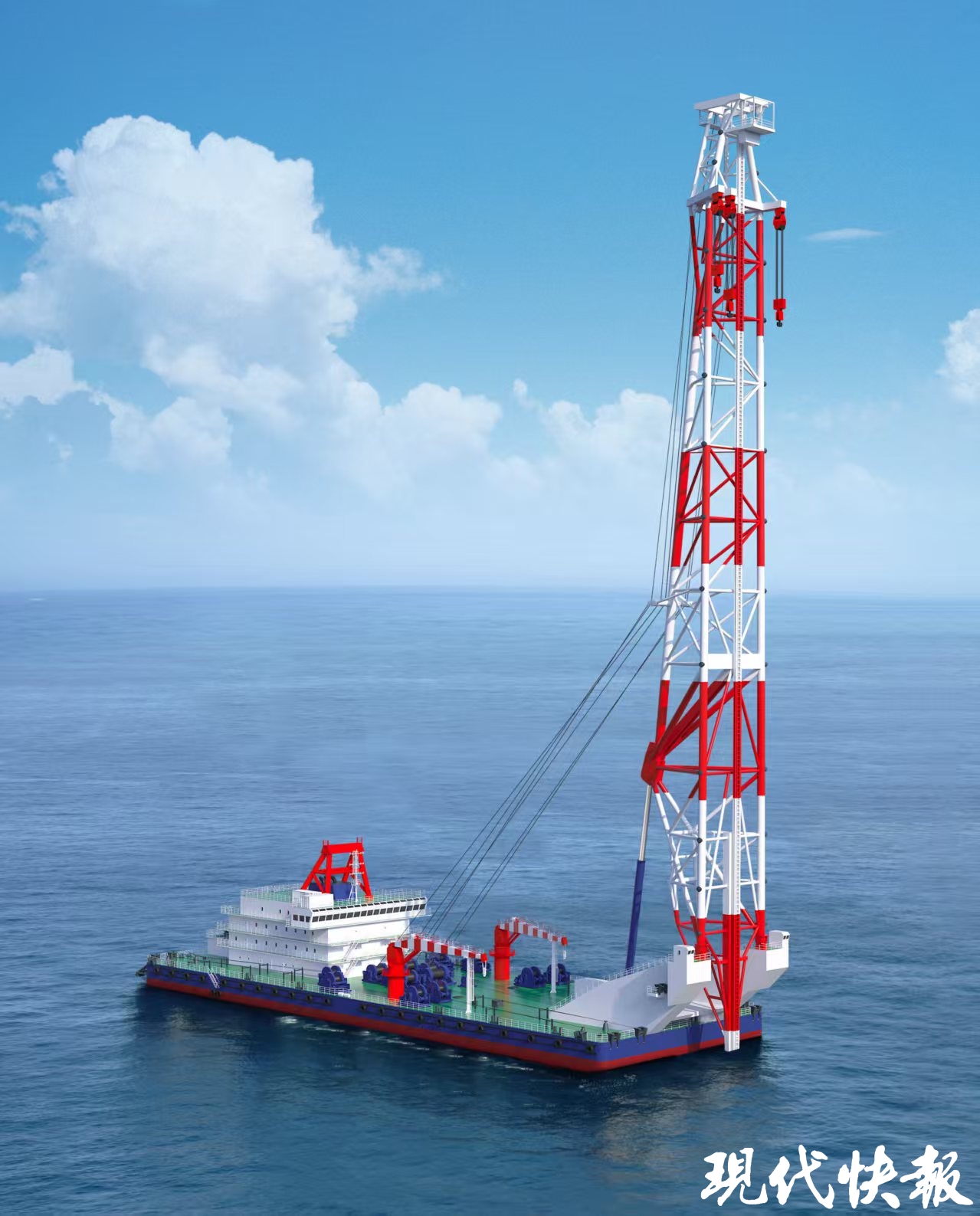 据悉,该船总长130米,桩架高度达156米,可打最大桩重700吨、直径7米的桩基,是目前全球桩架最高、吊桩能力最强的打桩船,也是国内首艘兼具动力定位系统与三项世界级性能指标的打桩船。其作业水深突破70米,打桩定位精度达厘米级。同时,该船在全球首次应用“DP动力定位+锚泊定位”融合技术和主油缸闭式液压系统,显著提升了复杂海况作业稳定性与打桩效率,并实现能量回收,绿色环保。