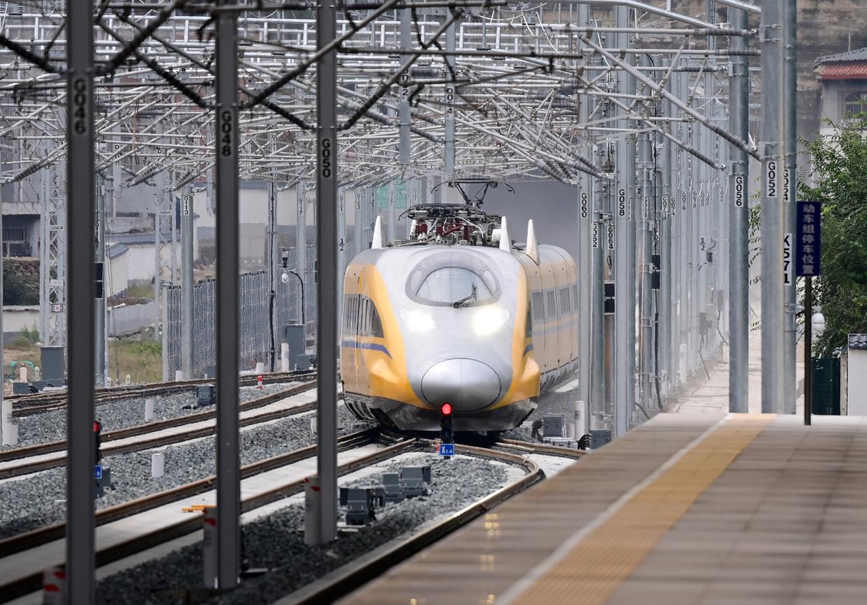 9月11日,西延高铁联调联试综合检测列车驶入延安站。新华社发(祁小军 摄)