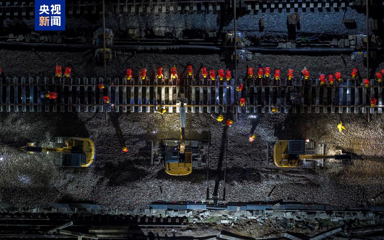 据了解,庐山城际场是既有昌九城际铁路的关键运输要塞,高峰期每3分钟就有一趟列车通过。所谓“I级封锁施工”,是指在铁路营业线上进行的最高级别施工,必须在规定的“天窗时间”内完成所有作业并恢复线路正常运行。此次昌九高铁庐山城际场站改施工需要在4个夜间累计22个小时的“天窗时间”内,共完成12组既有道岔、223米轨排等关键部件的拆除、移出、组装、拼接等工序。