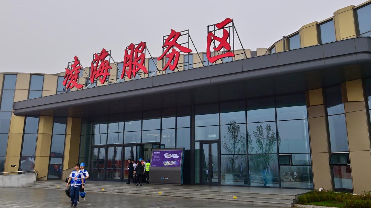 这是9月15日拍摄的京哈高速哈尔滨方向的凌海服务区(无人机照片)。新华社发(辽宁省交通运输厅供图)