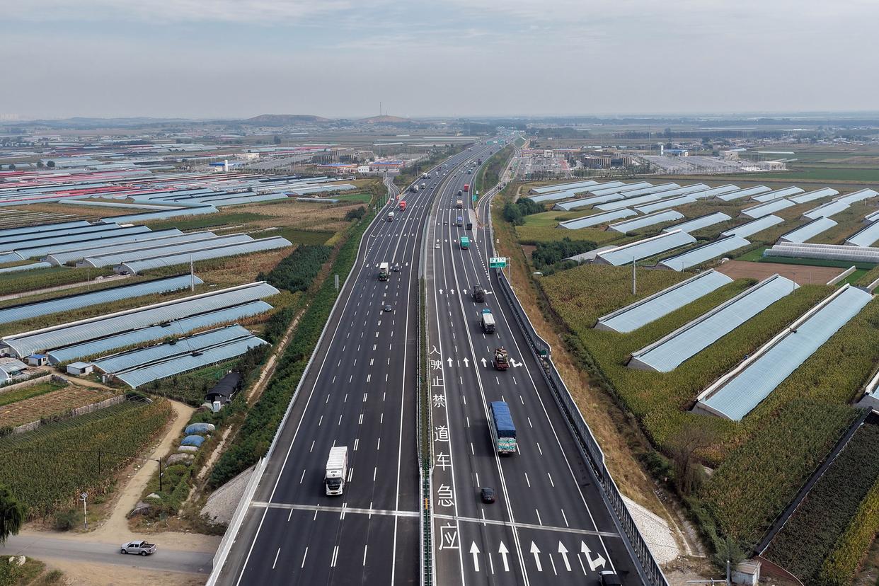 这是9月22日拍摄的京哈高速改扩建项目(无人机照片)。新华社发(辽宁省交通运输厅供图)