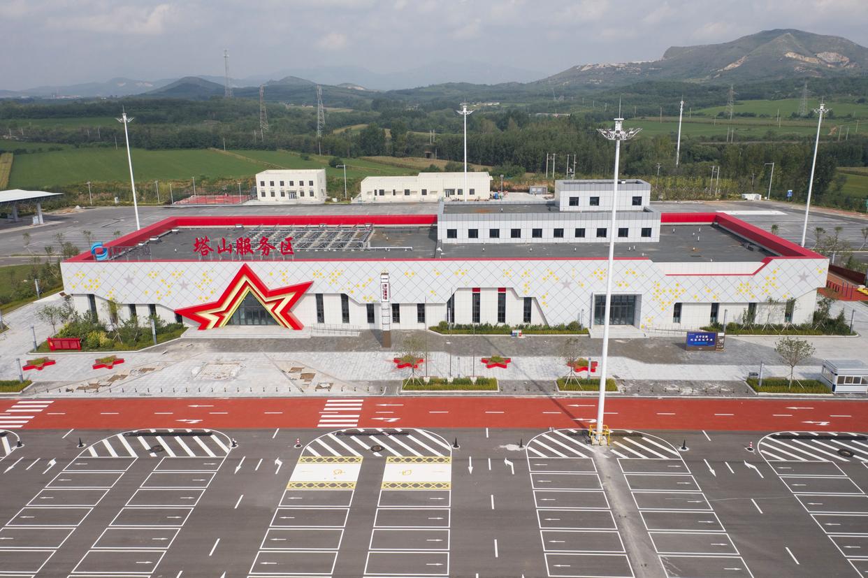 这是9月15日拍摄的京哈高速北京方向的塔山服务区(无人机照片)。新华社发(辽宁省交通运输厅供图)