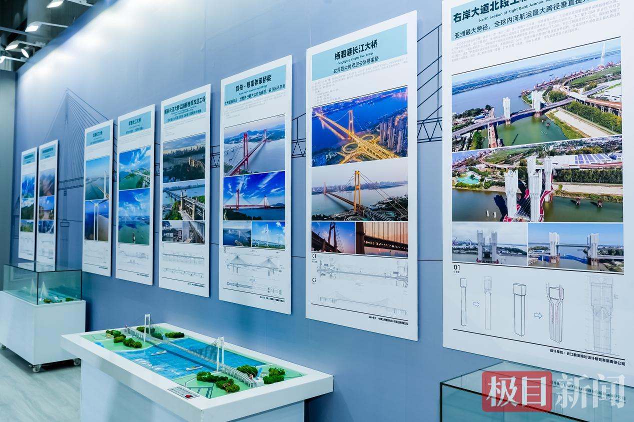 B区则是展现了武汉作为全国工程勘察设计服务基地之一的综合优势。展区汇集了世界级桥梁工程模型,包括杨泗港长江大桥、观音寺长江大桥等标杆。此外,沪渝蓉高速铁路、应城300MW压缩空气储能电站、鄂州花湖机场等重大项目的BIM技术应用案例,凸显武汉设计在智能建造、数字孪生等前沿领域的探索,更展现其技术成果的国际化传播与应用。