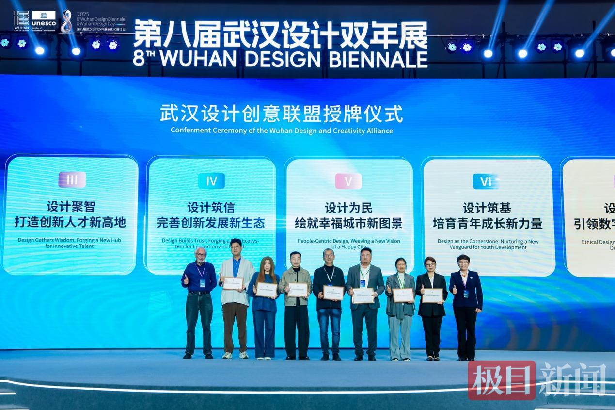 武汉有设计相关专业高校50余所,设计专业在校学生近10万人,设计相关企业突破1万家,10余个设计行业协会,从业人员超50万,形成了强大的“设计创意联盟”,催生出了集产业链、创新链、人才链、价值链于一体的融合创新发展生态体系。在开幕式的最后,“武汉设计创意联盟”正式授牌,来自设计企业、行业协会、高校院所和独立设计师等领域多元设计力量代表共同见证。未来,“武汉设计创意联盟”将奋力实现设计融城,构筑协同发展新范式;设计赋能,激活产业升级新动能;设计聚智,打造创新人才新高地;设计筑信,完善创新发展新生态;设计为民,绘就幸福城市新图景;设计筑基,培育青年成长新力量;设计向善,引领数字文明新航向;设计联通,拓展国际交往新空间八大目标。