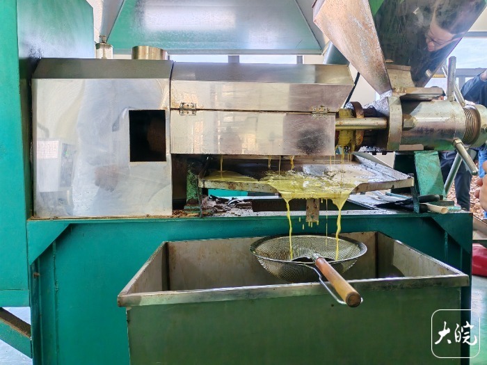 13日下午,当地村办企业里,榨油机隆隆作响,以当地油菜为原材料生产的菜籽油汩汩流出,散发出诱人的清香。