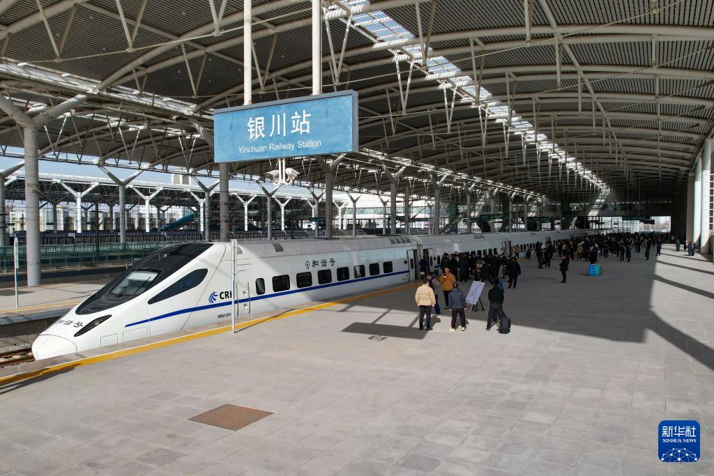 12月23日,包银高铁首发列车D4667次动车组抵达银川站。新华社发(王光辉 摄)