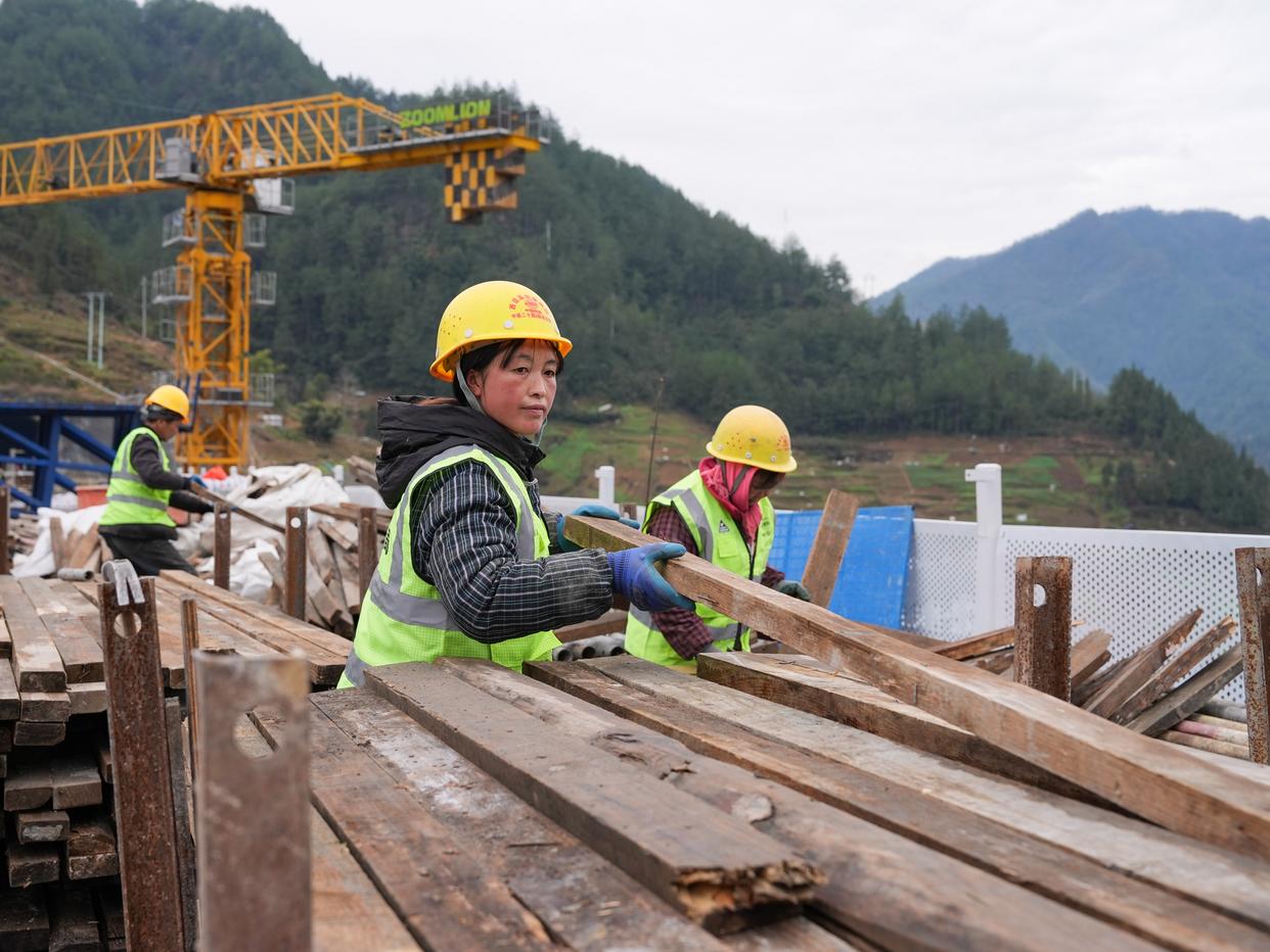 1月30日,建设者在西渝高铁渡口大桥施工作业。新华社记者 王曦 摄