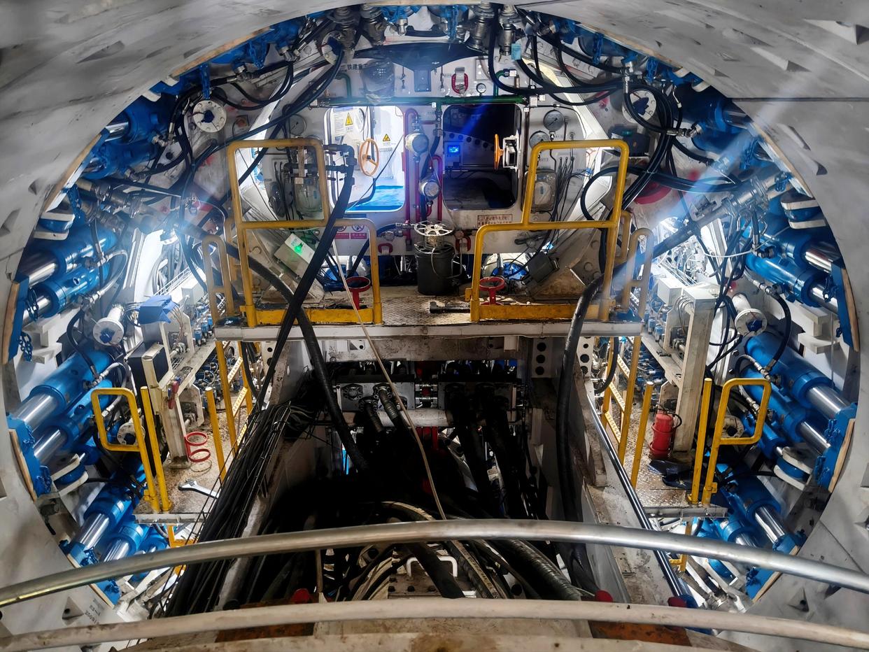 2月28日,工作人员在广东深圳西丽高铁站盾构始发现场作业。新华社发(张全新 摄)
